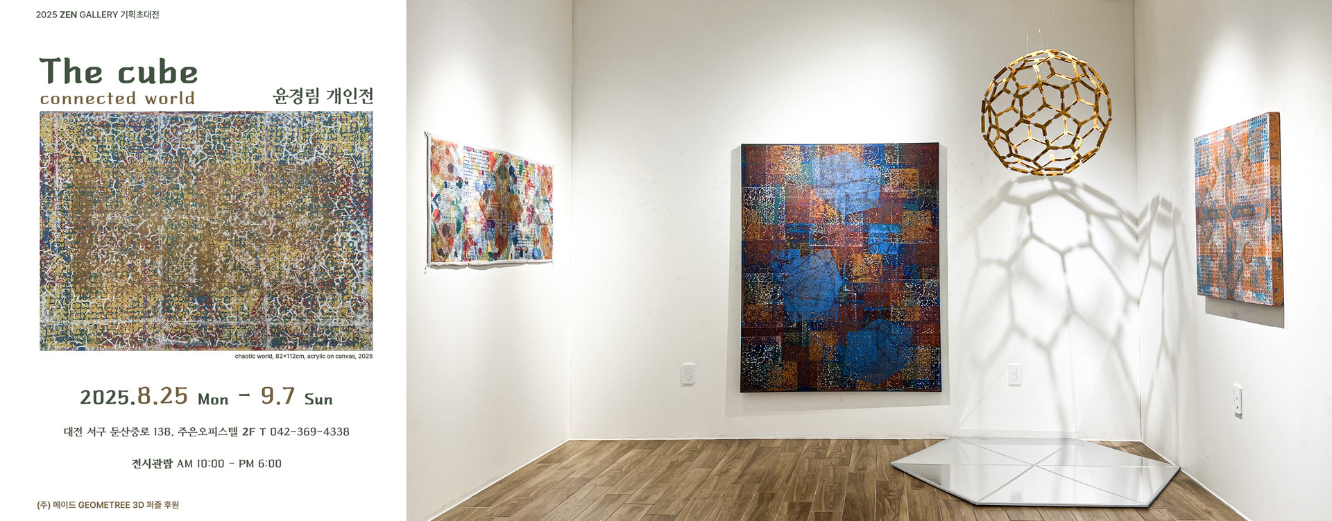 윤경림 작가님께서 GEOMETREE 3D 퍼즐로 완성한 풀러렌 C60 구조물을 멋진 작퓸으로 만들어주셨습니다. 윤경림 작가님의 개인전 ‘The CUBE: connected world’가 내일부터 9월 7일(일)까지 대전 젠갤러리에서 열립니다. 젠갤러리, 042-369-4338